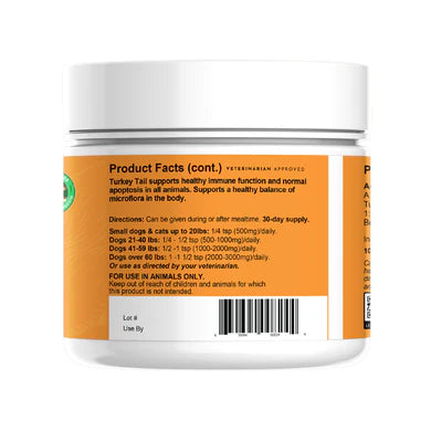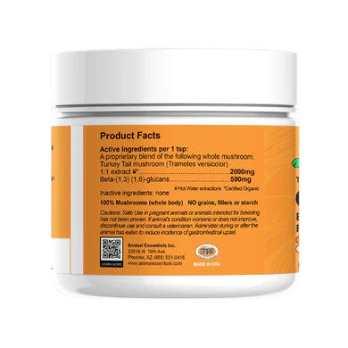Active Ingredients per 1 tsp): Certified organic Turkey Tail (Trametes versicolor) 1:1 extract.....................2000 mg. Beta-(1-3) (1-6)-glucans...........500 mg.