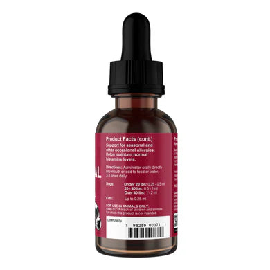 Directions: Administer orally preferably 1 hour between meals 2-3 times per day. If this isn't possible try adding to a little bit of water or salt-free broth. As a last resort, add to food. For best results start using the product at the first sign of allergy symptoms. Dose for cats: .25 ml